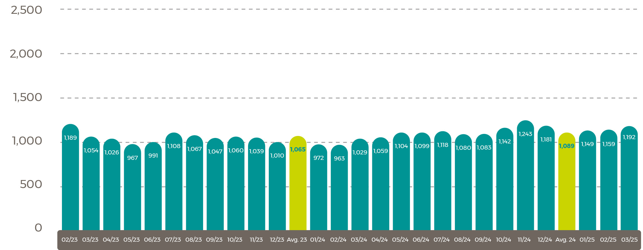 The Malaysia Palm Oil Settlement Price traded in a RM327/tonne (US$72) range of RM4,246/tonne (US$934) to RM4,573/tonne (US$1,006) during March, with an average for the month of RM4,428/tonne (US$974).
